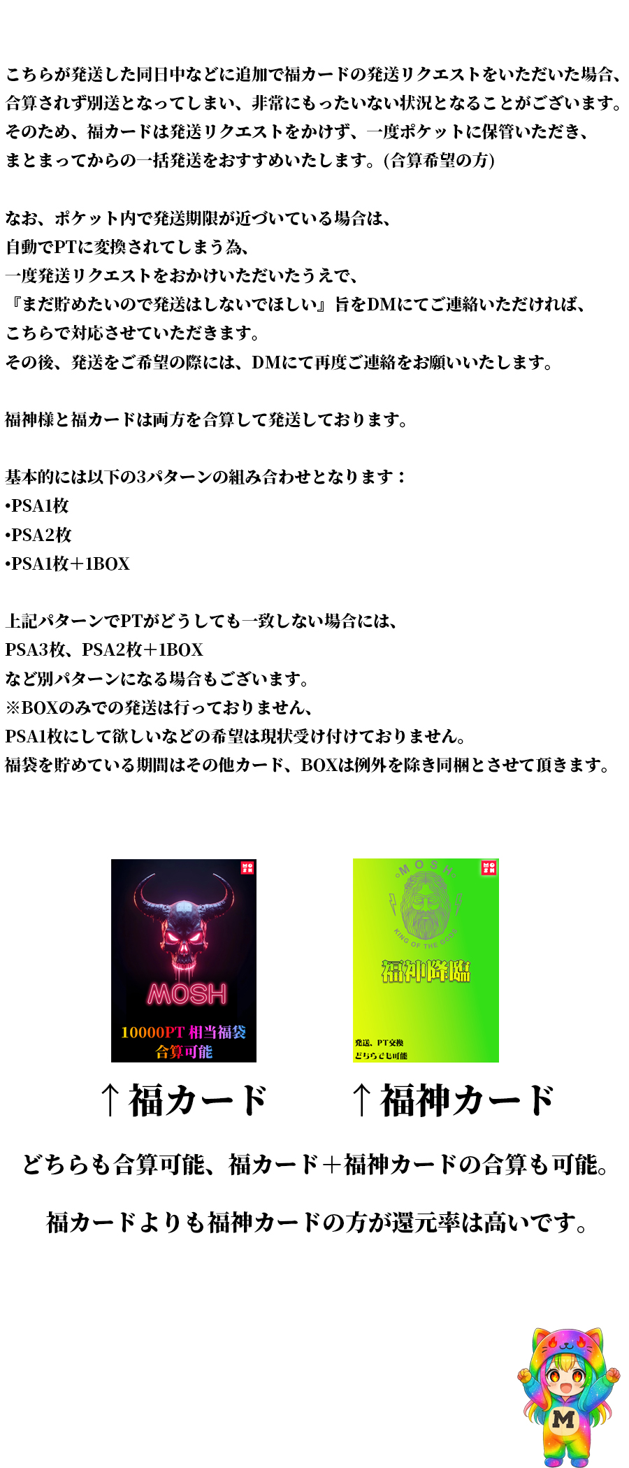 大量発送のタイミングが重なり在庫切れになってしまった場合にBOX以外は鑑定付きアプリなどで購入する場合がございますのでご了承ください。